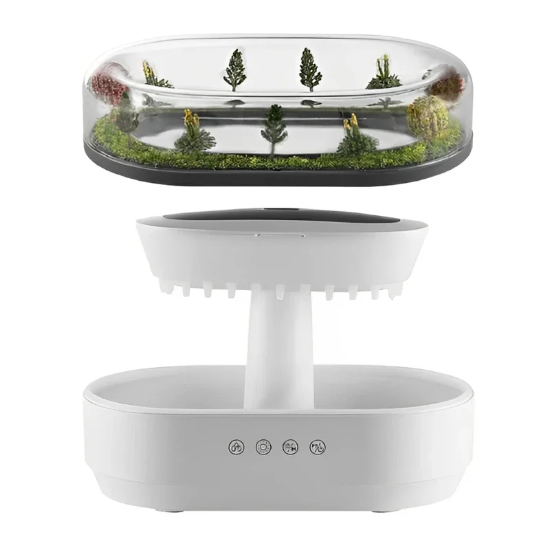 این دستگاه بخور، با شبیهسازی صدای دلنشین قطرات باران و نورپردازی آرامشبخش 7 رنگ، شما را به طبیعت بکر و آرام میبرد. طراحی منحصر به فرد آن، با المانهای طبیعی و یک منظرهی مینیاتوری از جنگل، فضایی جذاب و دلانگیز را در خانه یا محل کار شما ایجاد میکند.