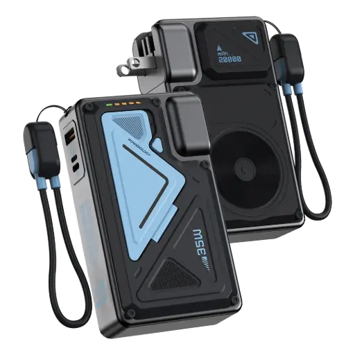 پاوربانک Powerology 20000mAh MagSafe شارژ ایمن و آسانی را ارائه میدهد. این پاوربانک دارای محافظ داخلی در برابر ولتاژ بیش از حد، اتصال کوتاه و مشکلات حرارتی است. این بدان معناست که دستگاههای شما همیشه هنگام شارژ محافظت میشوند. این پاوربانک دارای ۲ باتری ۱۰۰۰۰ میلیآمپر ساعتی، ۷.۷ ولت / ۷۷ وات ساعت است. نشانگر درصد LED، ردیابی سطح باتری را آسان میکند، بنابراین هرگز غافلگیر نخواهید شد. با پایه تاشو، میتوانید در حین شارژ دستگاه خود، بدون دخالت دست، از مشاهده آن لذت ببرید. این پاوربانک دارای شارژ بیسیم MagSafe است. این پاوربانک تا ۱۵ وات برای دستگاههایی که از آن پشتیبانی میکنند، فراهم میکند. همچنین میتوانید با پورتهای USB-C و USB-A به سرعت شارژ کنید. این شارژر مسافرتی جمع و جور است. دارای دوشاخههای قابل تعویض برای پریزهای برق ایالات متحده، اتحادیه اروپا و بریتانیا است. به علاوه، میتواند تا چهار دستگاه را به طور همزمان شارژ کند. عملکرد شارژ عبوری آن به شما امکان میدهد پاوربانک و دستگاههای خود را همزمان شارژ کنید. پاوربانک Powerology MagSafe انتخابی هوشمندانه و قابل اعتماد برای شارژ است. چه در خانه باشید، چه بیرون از خانه و چه در سفر به خارج از کشور، این ویژگی همه چیز را ساده و ایمن نگه میدارد.