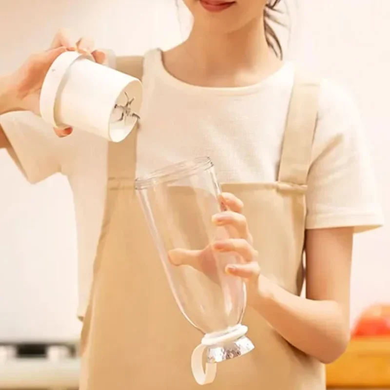 ابتدا بطری را شارژ کنید. شما می توانید با استفاده از کابل USB، بطری را به یک منبع برق متصل کنید. چراغ های LED روی بطری نشان می دهد که چقدر شارژ باقی مانده است. با یک ساعت شارژ، شما می توانید بیش از 15 وعده آب میوه تازه درست کنید.