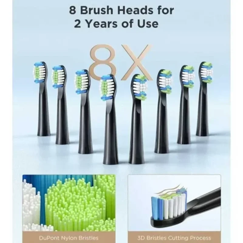 این محصول شامل مسواک برقی و هشت سر برس می باشد. یک باتری لیتیومی قوی و سازگار با محیط زیست داردبا کابل USB شارژ می شود و با بسیاری از دستگاه های شارژ مختلف از جمله پاور بانک، کامپیوتر و لپ تاپ سازگاری دارد. علاوه بر این ها این محصول دارای یک نخ دندان است که به درمان بیماری های لثه و اطمینان از تمیز کردن کامل دندان ها کمک می کند.این مسواک برقی دارای 5 حالت با کارایی بالا برای رفع مشکلات مختلف لثه و دندان است که به راحتی میتوانید از آن ها استفاده کنید.وزن نسبتا سبکی را دارد این مسواک های برقی و دندان های تمیز و سالم را با 40000 چرخش مسواک در دقیقه برای شما فراهم می کنند.این مسواک دندان ها را در سه حالت تمیز کردن عمیق – معمولی، نرم و پالس – با طراحی کم صدا به لطف فناوری به روز پالس تمیز می کند.می تواند به درمان بوی بد دهان، تمیز کردن باقی مانده غذا از روی دندان ها و مراقبت از بریس ها و پل ها کمک کند.